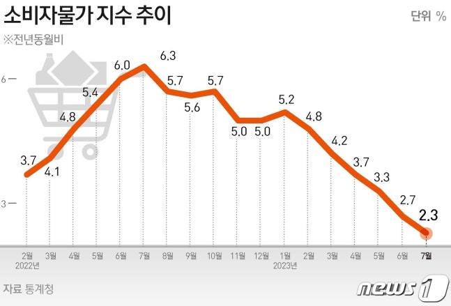 한은은 지난달 소비자물가 상승률이 2.3%로 낮아지면서 다른 선진국보다 양호한 물가 안정 성과를 냈다고 자평했다. 물론 앞으로의 물가 오름세는 작년 기저효과에 따라 3% 내외 반등할 것으로 관측되나 내년 중에는 다시 2%대 중반 이하로 떨어진다고 한은은 예상 중이다.